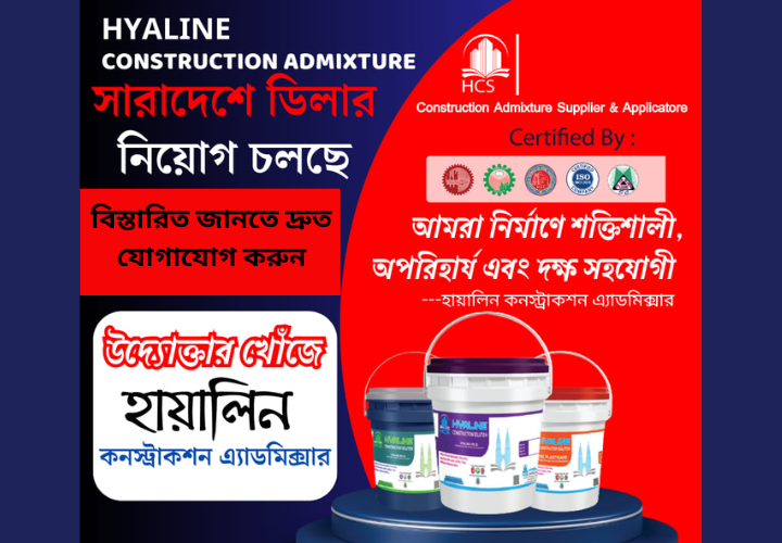 হায়ালিন কন্সট্রাকশন সলিউশন প্রতিষ্টানটি দীর্ঘদিন যাবত অতন্ত গৌরবের সাথে অসাধারণ গুন ও মানসম্পন্ন, মালয়েশিয়ান বিশ্বখ্যাত কোম্পানি ods এর ফর্মুলা ও র-ম্যাটেরিয়ালসে বিভিন্ন প্রকার বিল্ডিং নির্মাণ এ্যাডমিক্সার প্রস্তুত ও সরবরাহ করে আসছে। এই এ্যাডমিক্সার সমুহ ব্যবহারের মধ্যমে, স্থাপনার দীর্ঘস্থায়িত্ব বৃদ্ধি, শক্তি বৃদ্ধি, পানি প্রতিরোধক, ড্যামপ রোধ, লবনাক্ততা রোধ, তাপ নিধরক, মরিচা রোধ, লিকেজ রোধ পোকা মাকার নিধক সহ ভিবিন্ন প্রকার কার্যকরী ও স্থায়ী সমাধান পাওয়া যায়। এবং